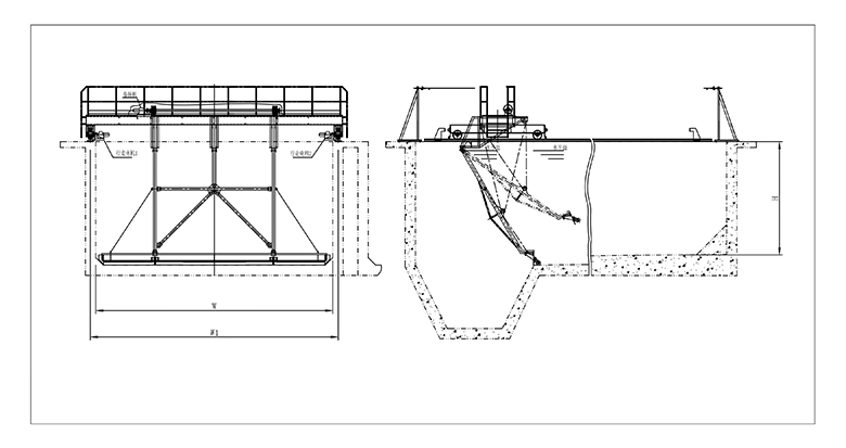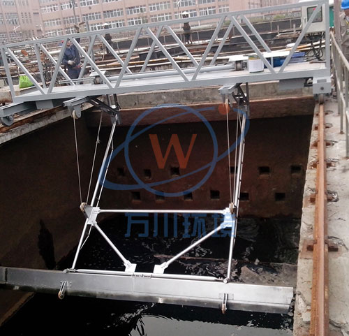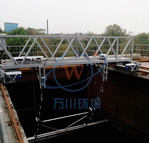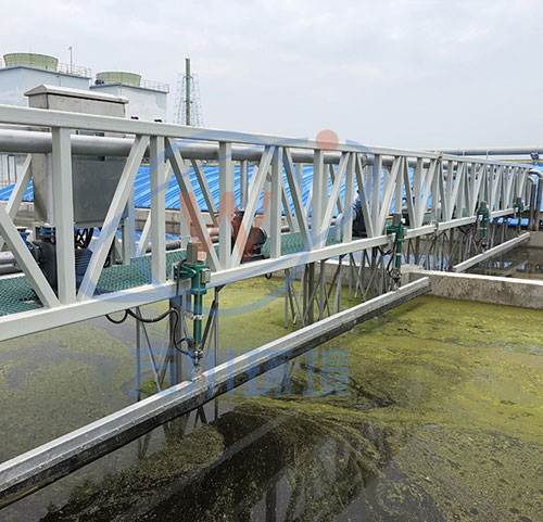 抬耙刮泥機用于污水處理廠平流沉淀池,將沉降在池底的污泥刮集至集泥槽,并將池面的浮渣撇向集渣槽。