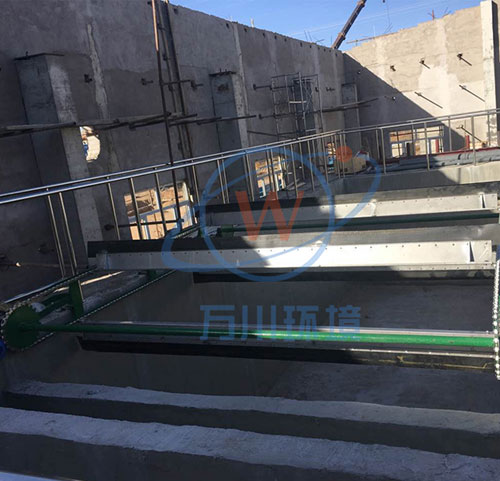 WG型系列刮沫機用于各種矩形氣浮池的刮沫和撇渣。分成鏈板式(適用于池寬小于5米)和行車式(適用于池寬大于4米)兩類。